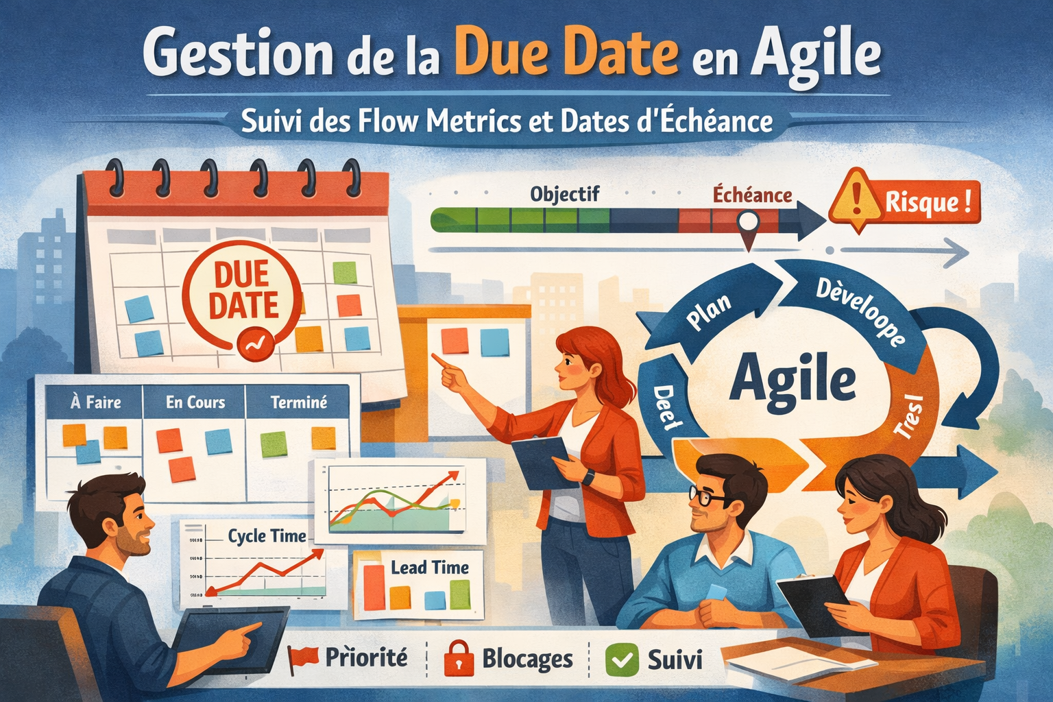 Améliorez la communication au sein de vos équipes grâce au suivi en continu de vos métriques de Flux et de vos métriques DORA, avec l’aide de notre IA Alice. En ayant une visibilité et une évaluation en temps réel de la productivité et de la qualité durant l’avancement du projet, vous pourrez identifier ensemble les points à rectifier et optimiser l’efficience opérationnelle de vos équipes et de votre organisation.